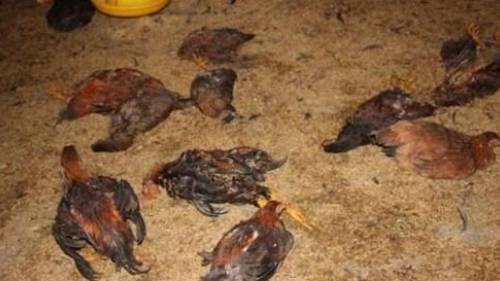 + Gia cầm lờ đờ, chán ăn, xù lông, lười vận động trong khoảng 1-2 giờ, sau đó bỗng dưng chúng vẫy cánh, nhảy sốc lên rồi nằm ngửa, giãy chết trong khoảng 1-2 phút.