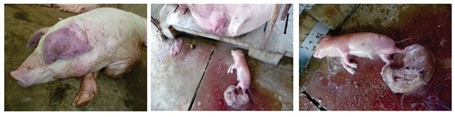 - Lợn nái có thể xảy thai vào giai đoạn cuối, thai chết lưu ở giai đoạn hai hoặc bị chết yểu sau khi sinh ra.