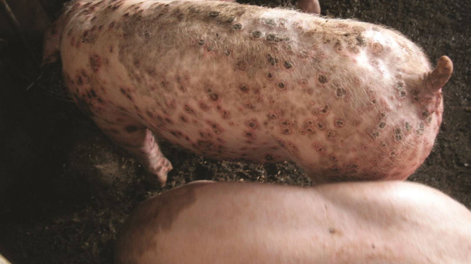 Thứ hai, Nếu để yên không chữa trị, rất nhanh sau đó (khoảng 2-5 ngày sau) cả ô chuồng rồi đến thậm chí cả đàn heo đều có dấu hiệu ngứa ngáy khó chịu, da nổi mẩn đỏ, đóng vảy như trên.