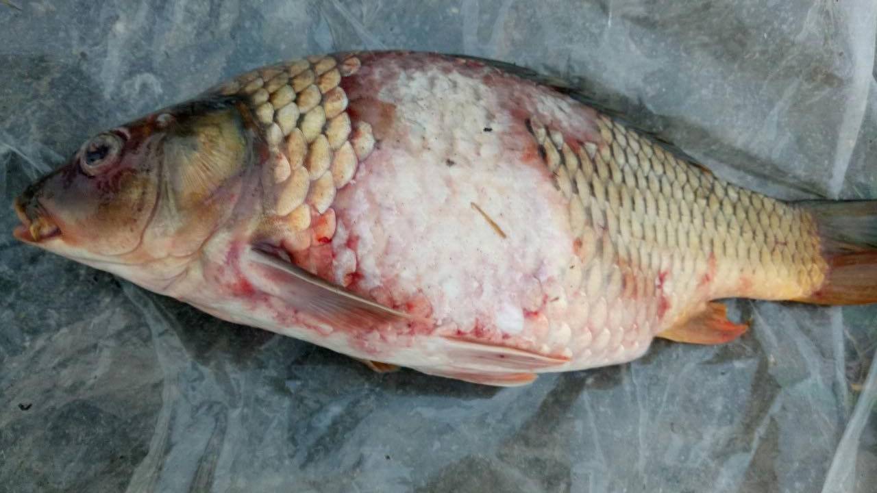 b. Triệu chứng: Màu sắc cá nhợt nhạt, thân cá có nhiều nhớt màu trắng đục; đuôi, vây bị xơ mòn, bơi lội không định hướng, thân cọ vào cây cỏ như bị ngứa.
