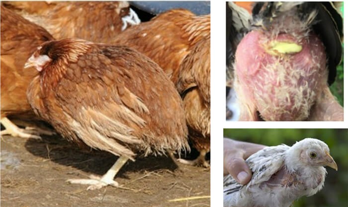 - Gà mái bị bệnh xoang bụng tích nước do viêm buồng trứng và viêm phúc mạc, bụng gà trễ xuống đứng dáng đứng “chim cánh cụt”.