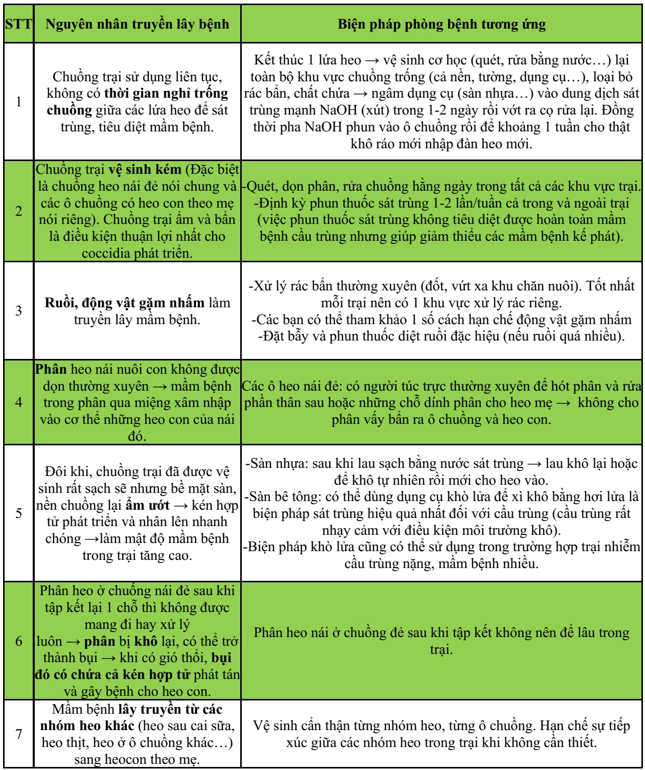 Để phòng bệnh cầu trùng trên heo hiệu quả, trước hết chúng ta cần nắm rõ mọi con đường truyền lây của mầm bệnh và ngăn chặn càng triệt để càng tốt.