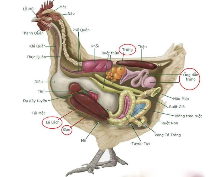Bệnh Leucosis ở gà gây ra các khối u ở lá lách, gan, ống dẫn trứng